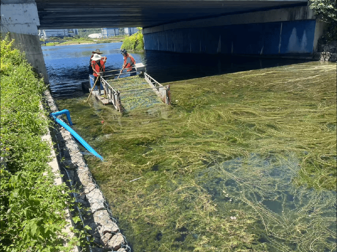 針對(duì)不同區(qū)域的水草特點(diǎn),精準(zhǔn)施策:大面積區(qū)域用機(jī)械打撈船快速收割;淺灘水草由專人下水割草;零散水草由保潔船只人工打撈;水面漂浮的斷根水草及浮萍,則利用攔污排攔截,防止擴(kuò)散。